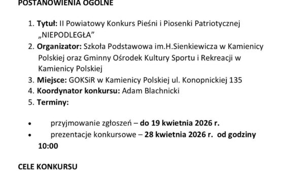 II POWIATOWY KONKURS PIOSENKI I PIEŚNI PATRIOTYCZNEJ ,,NIEPODLEGŁA”