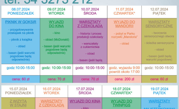 W dniach 08.07.2024 – 19.07.2024 zapraszamy do zapisów na warsztaty organizowane podczas wakacji! Możliwe jest zapisanie dziecka na wybrane warsztaty/wyjazdy Zapraszamy wszystkie dzieci w wieku od 6 do 12 lat. Liczba miejsc jest ograniczona! pierwszeństwo zapasów mają dzieci z gminy Kamienica Polska! Zapisy oraz więcej informacji pod numerem telefonu […]