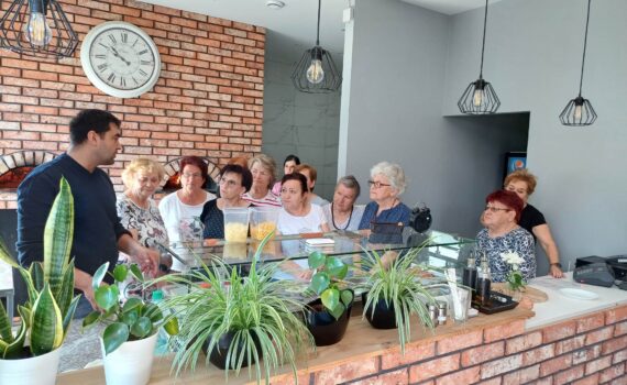 Dzisiaj w ramach programu Power Senior zorganizowaliśmy warsztaty kulinarne w Pizzeria Piecykowa. Nasze seniorki miały możliwość poznać tajemnice robienia pizzy, następnie każdy uczestnik warsztatów mógł zrobić własną pizzę z ulubionymi składnikami Dziękujemy wszystkim osobom biorącym udział w warsztatach i zapraszamy na kolejne.